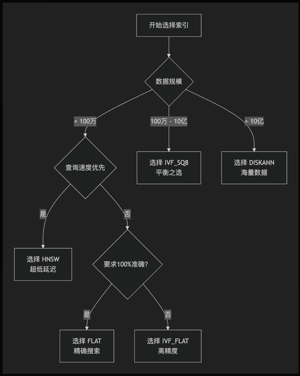 在向量数据库的世界里,Milvus 无疑是一个闪亮的明星。它能够轻松处理十亿甚至万亿级别的向量数据,而其背后强大的索引和搜索能力是其核心优势之一。然而,面对 Milvus 提供的多种索引类型,很多开发者可能会感到困惑:我到底该用哪一种?